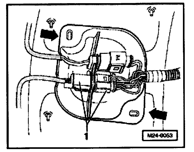 - Remove protective cover -arrows- and separate 6-pin connector (black) -1- to Oxygen sensor before catalyst -G39-.