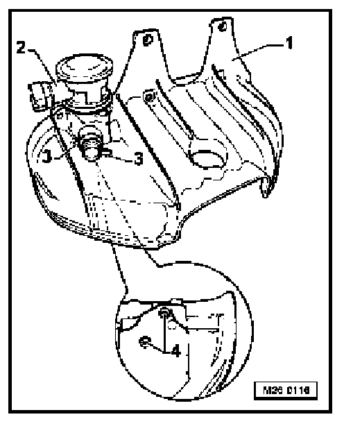 - Guide a 5 mm hex socket head bolt into holes -3- of warm air collector plate -1- and remove bolts -4- for combinabon valve -2-.