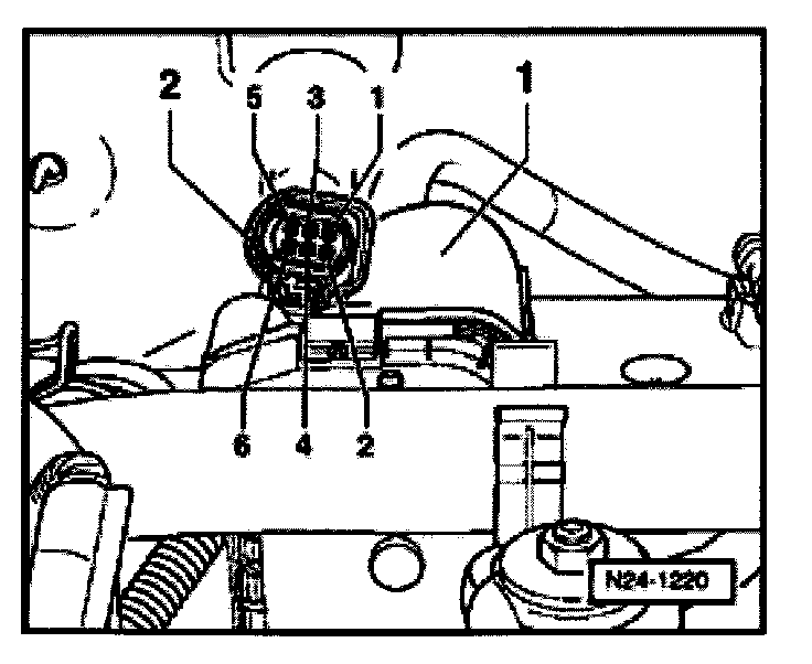 - Disconnect 6-pin connector -2- at the throttle valve control module.