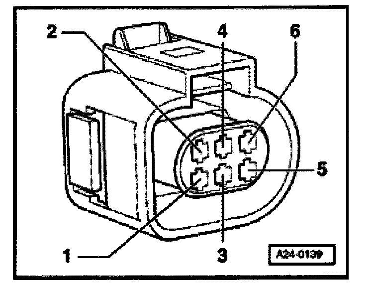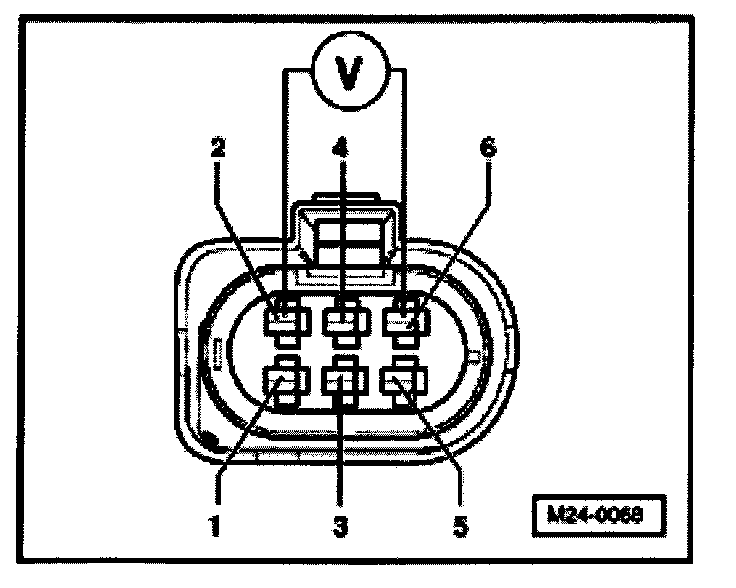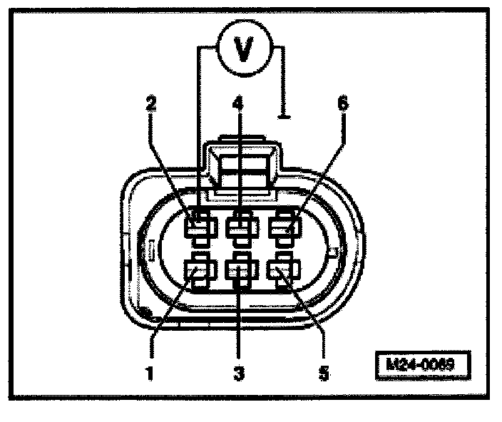 - Connect multimeter to terminals 2 + 6 of connector to make voltage measurement.