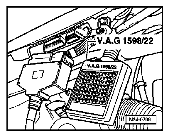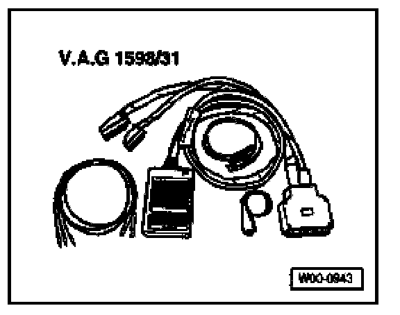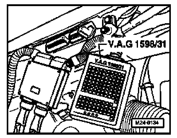 - Connect VAG1598/31 test box at control module wiring harness. Engine Control Module (ECM) is not connected.