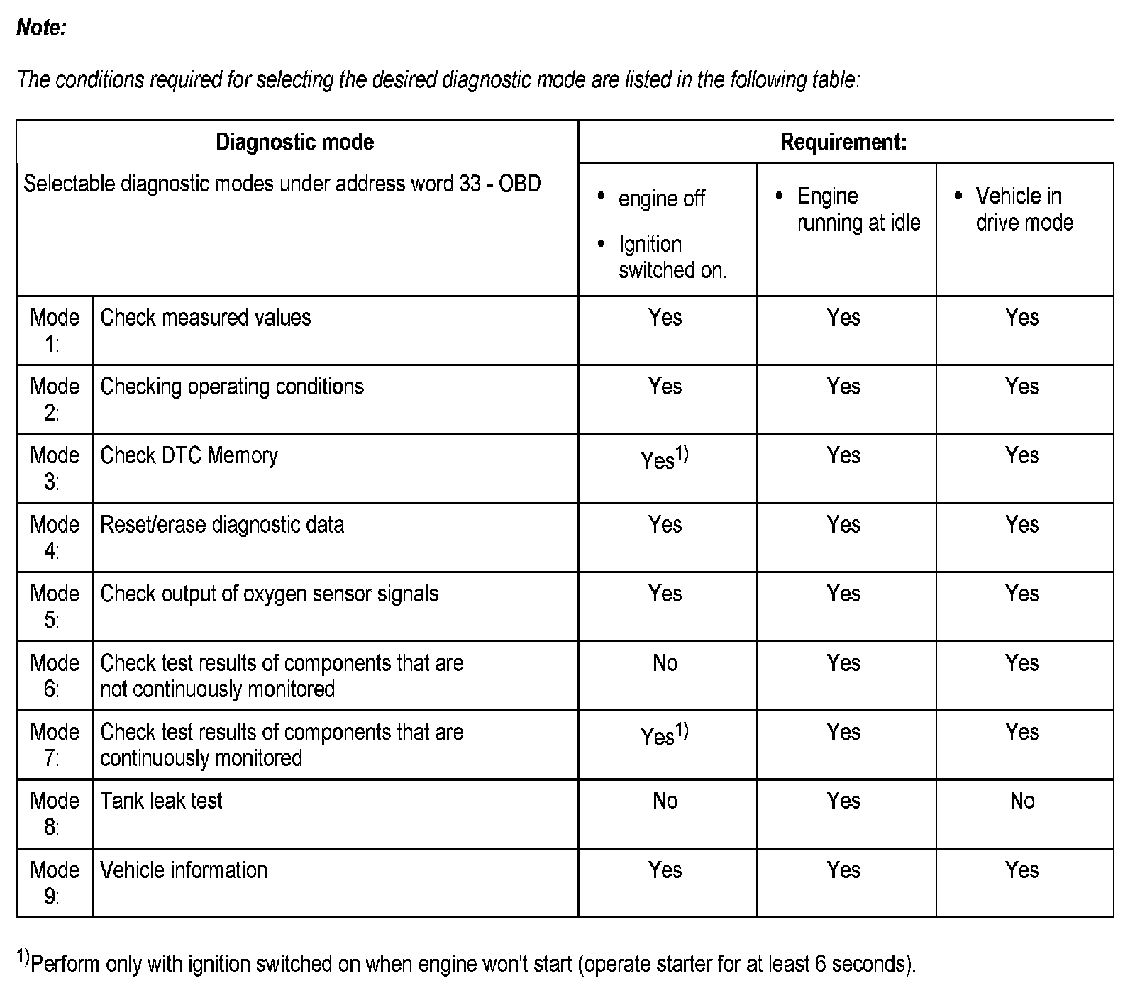 Selectable Diagnostic Modes Under Address Word 33 - OBD
