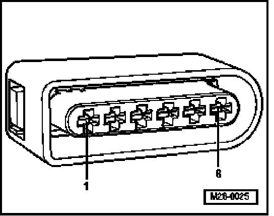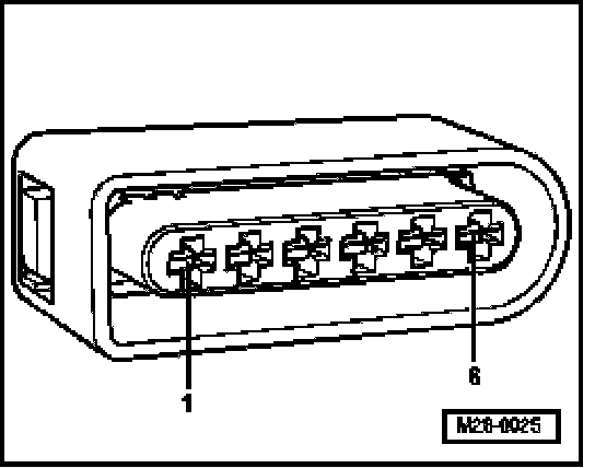 - Check wire between 6-pin connector terminal 6 and Motronic Engine Control Module (ECM) Power Supply Relay -J271- for open circuit according to wiring diagram. Wire resistance: max: 1.5 Ohms