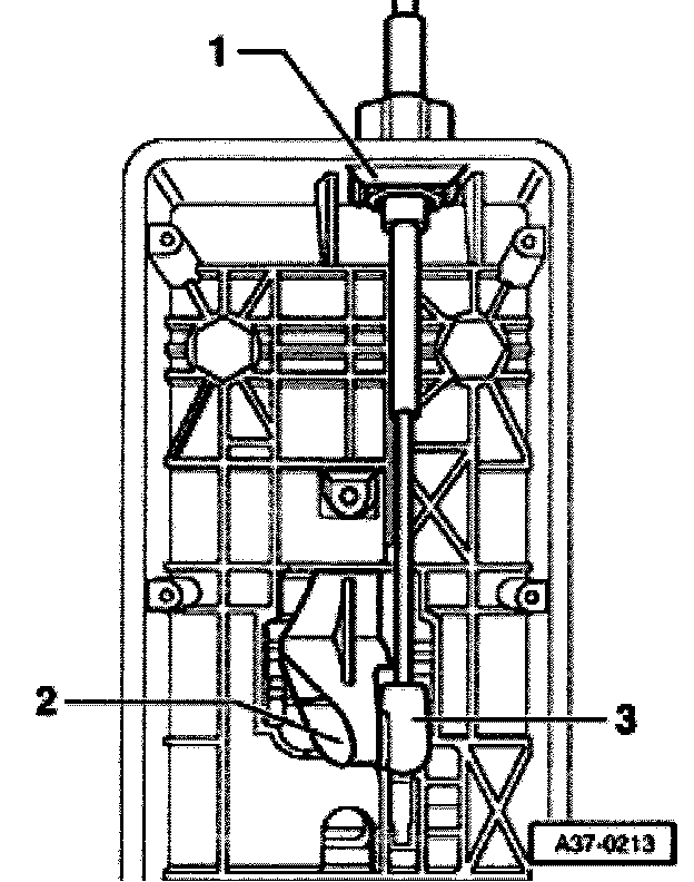 - Guide selector lever cable -3- with a new seal into selector lever housing.