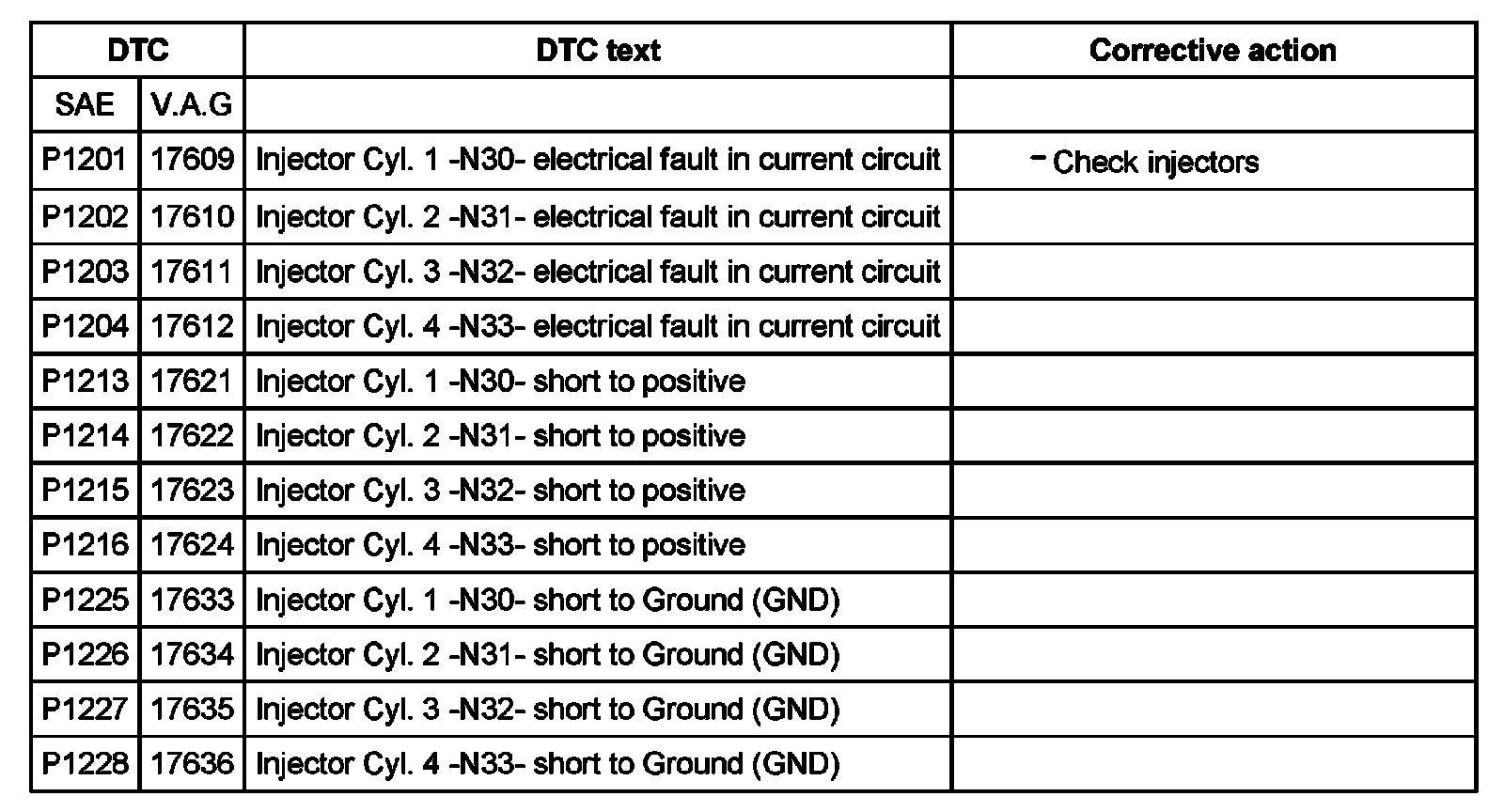 DTC P1201 - P1228: