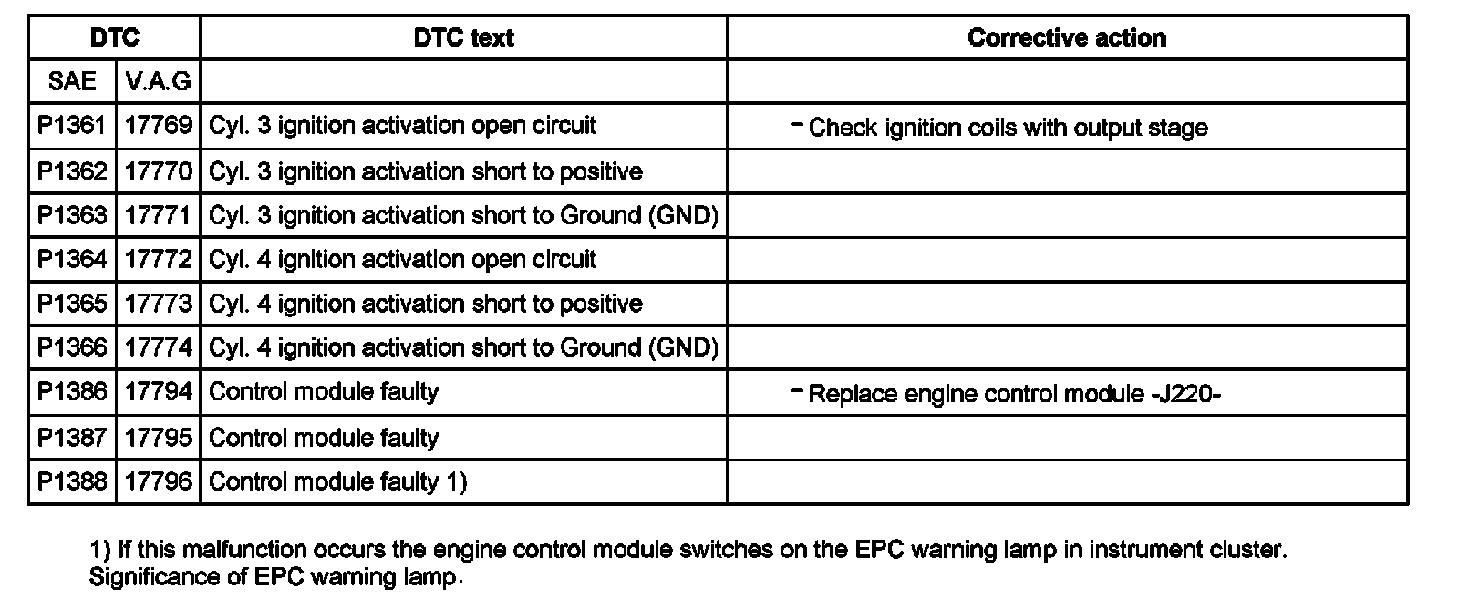 DTC P1361 - P1388: