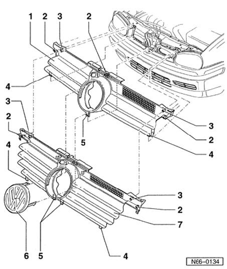 - Remove cross pins from lock carrier and remove radiator grille upward.