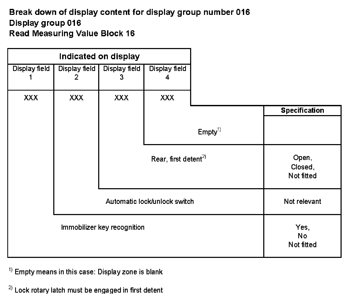 Break down of display content for display group number 016