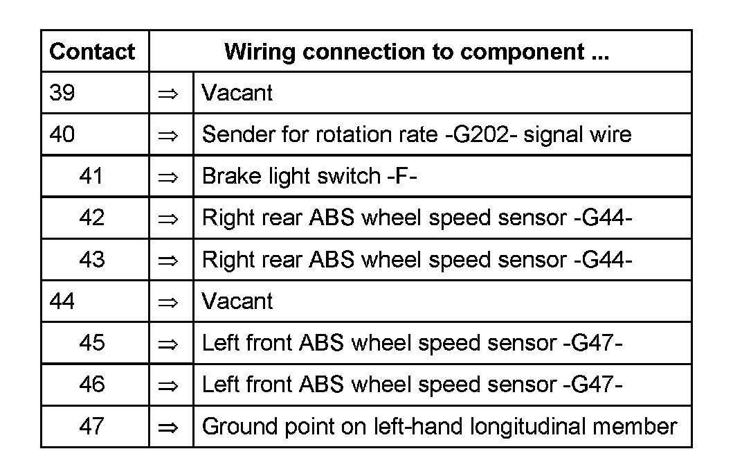 Contact assignment of connector T47 wiring harness/ABS control module (w/EDL) -J104