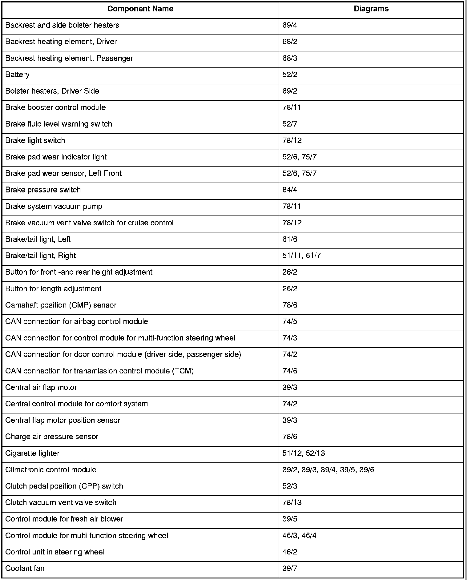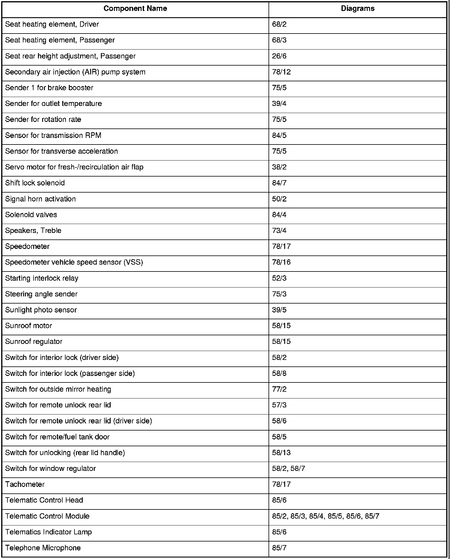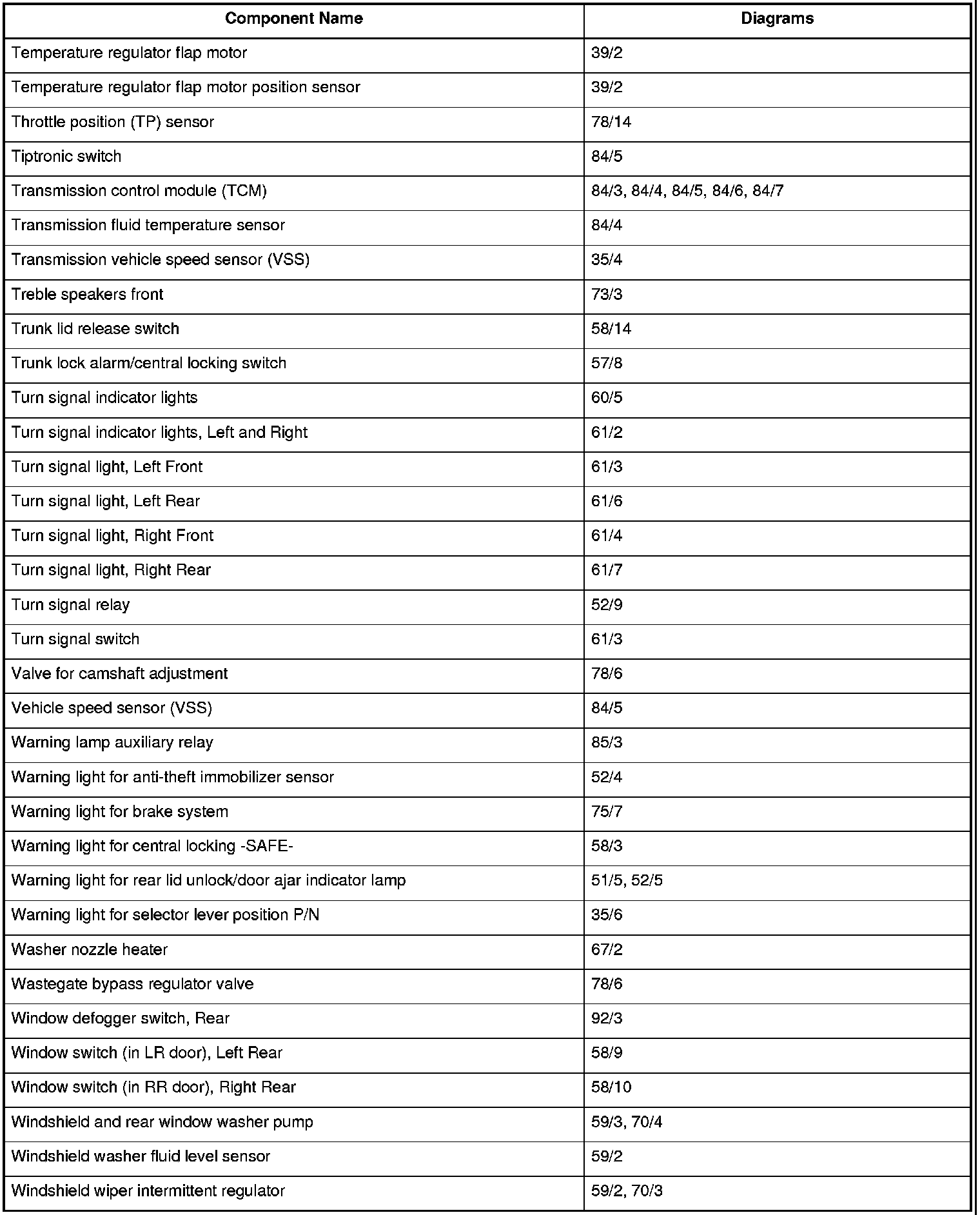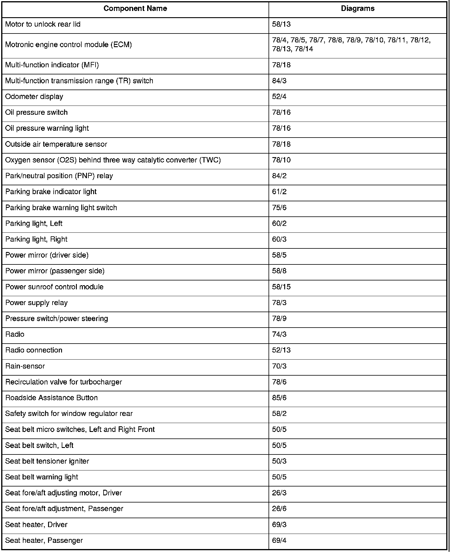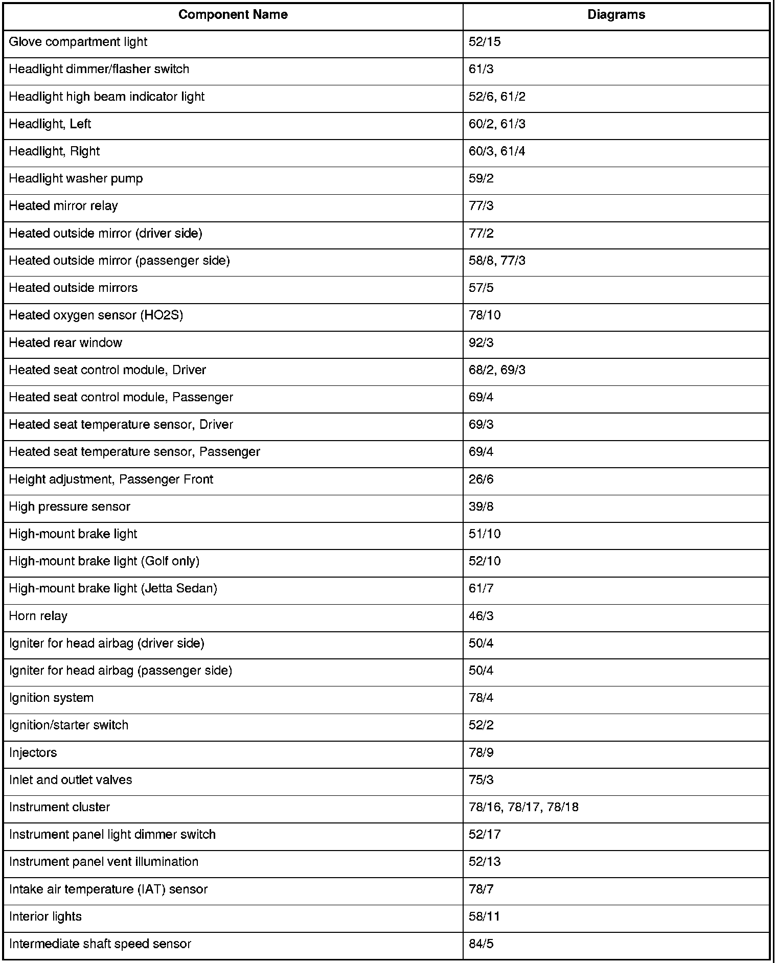 Master Diagram Index