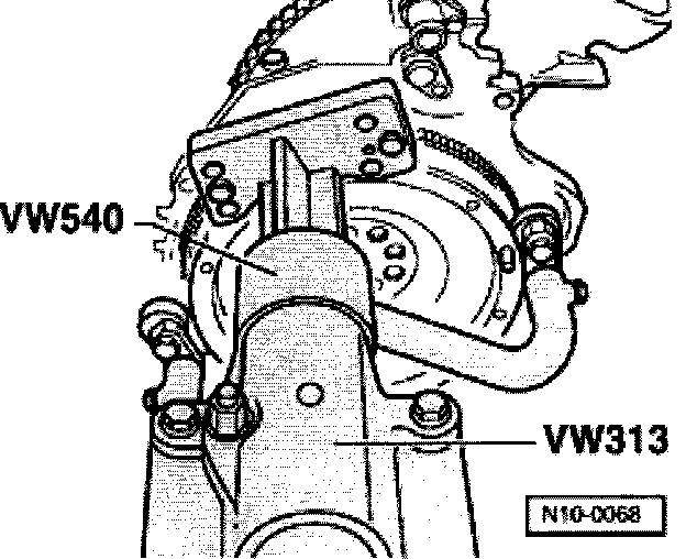 When working on the engine, it should be secured to the assembly stand support clamp VW 313 using the engine and transmission box support VW 540.