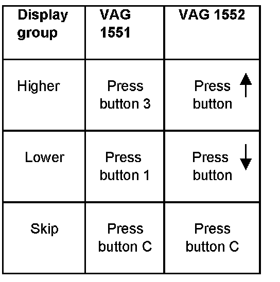 - Interpreting measured values in individual display fields See tables. Test Tables