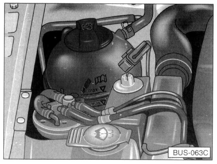 Since the expansion tank is transparent, the cap need not be removed to check the coolant level.