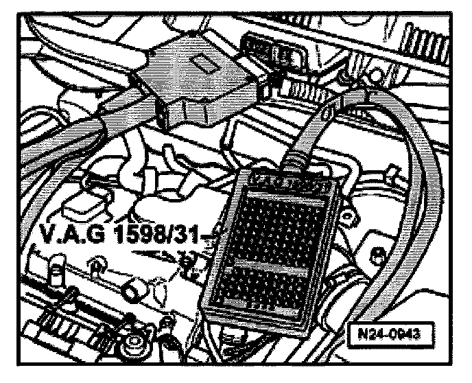 - Connect VAG1598/31 test box to control module wiring harness. The engine control module remains disconnected.