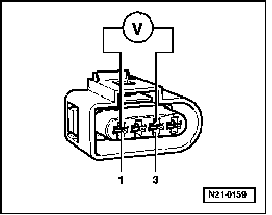 - Connect multimeter to measure voltage to terminals 1 (Ground) and 3 (positive) of connector for charge air pressure sensor using adapter cables from VAG 1594.
