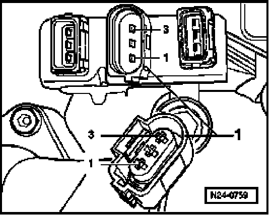 - Disconnect gray 3-pin harness connector -1- leading to the engine speed (RPM) sensor.