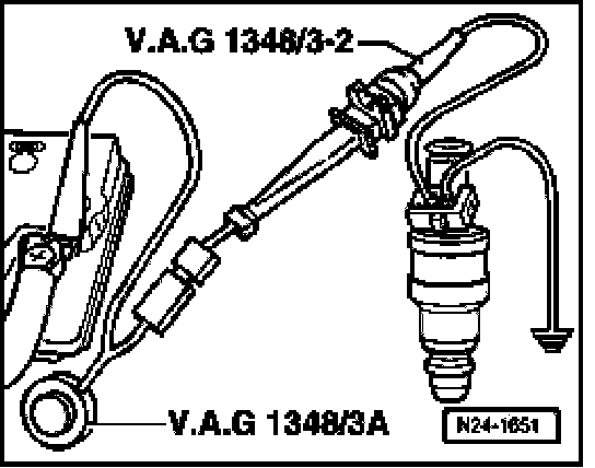 - Use adapter cable to connect second terminal of fuel injector to V.A.G1348/3 remote control with V.A.G1348/3-2 adapter cable.