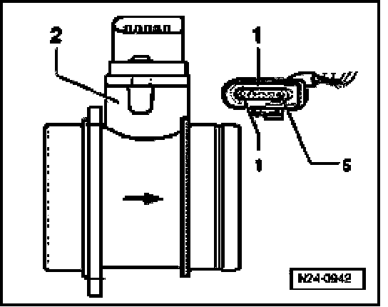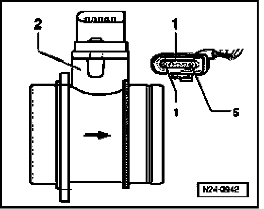 - Disconnect 5-pin connector -1- from Mass Air Flow (MAF) sensor -2-.