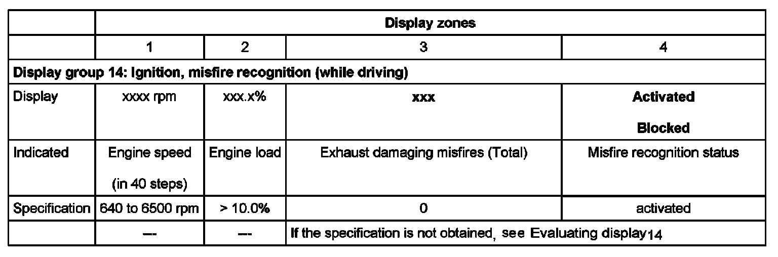 Evaluating display group 14, display zone 3 - total number of exhaust damaging misfires