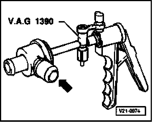 - Connect hand vacuum pump V.A.G1390 to vacuum connection for deceleration shut-off valve.