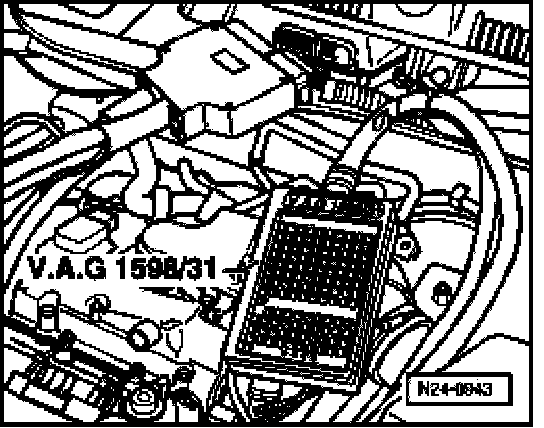- Connect V.A.G1598/31 test box to control module wiring harness. Engine control module remains disconnected.