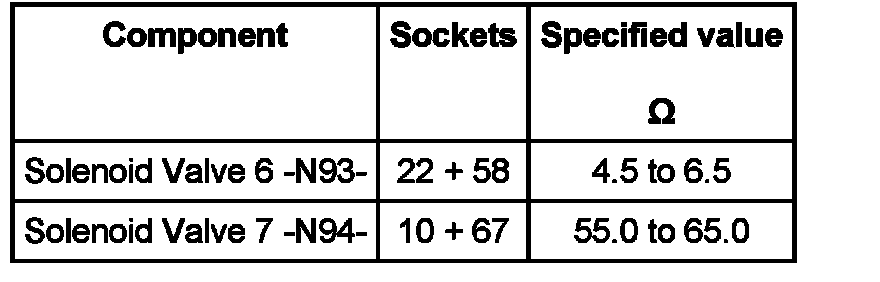 - Measure resistance of solenoid valves at test box between sockets:
