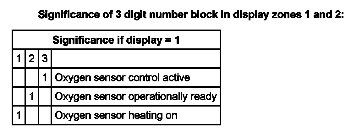 NOTE: The bits in display zone 2 will not be set to 1 until the catalyst temperature rises above 350 degrees C (See Display group 34, display zone 2).