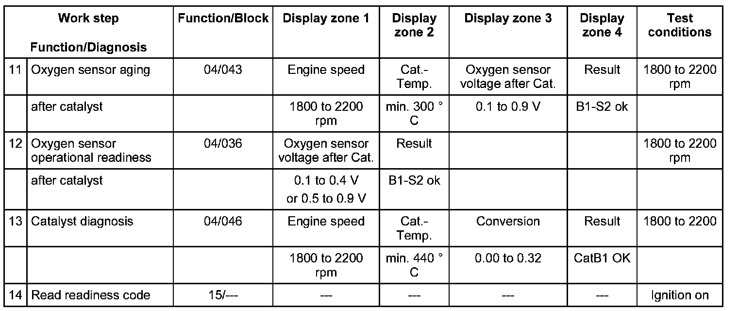 Work step 11: Diagnosis of oxygen sensor aging after catalyst