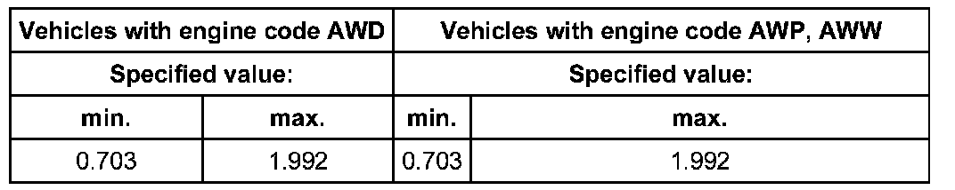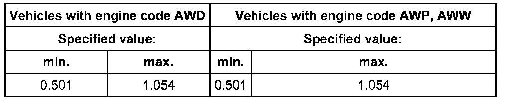 The values of the individual oxygen sensor test results must reach the specified value or must be within the min.- and max.- limits.