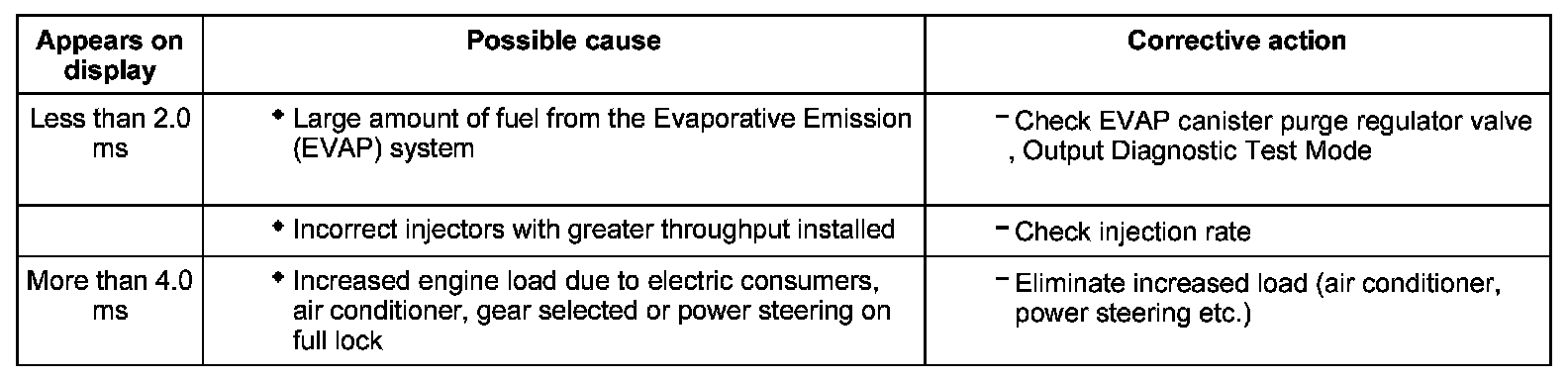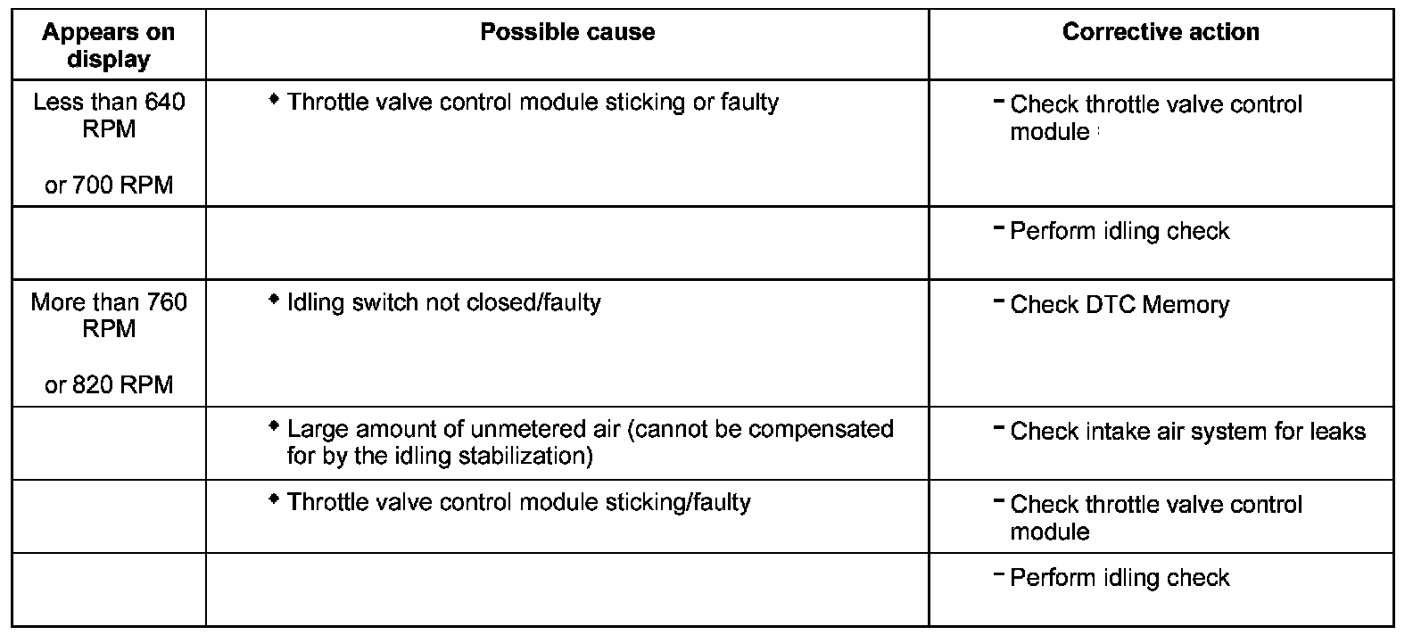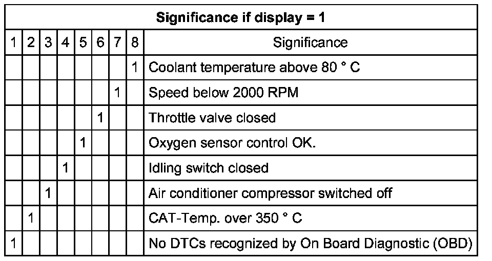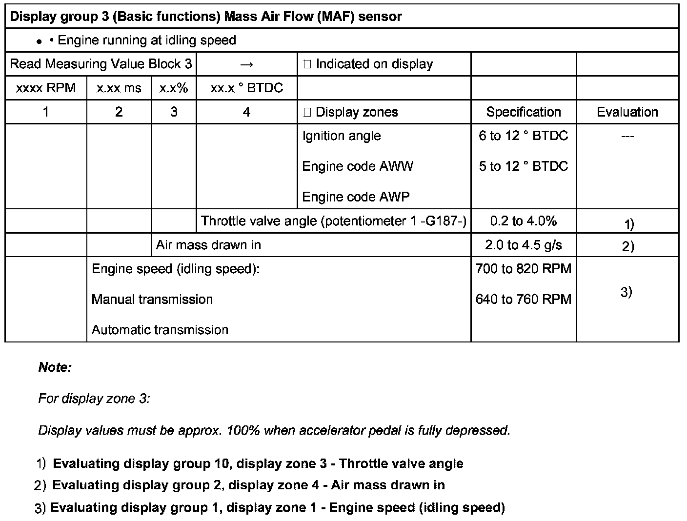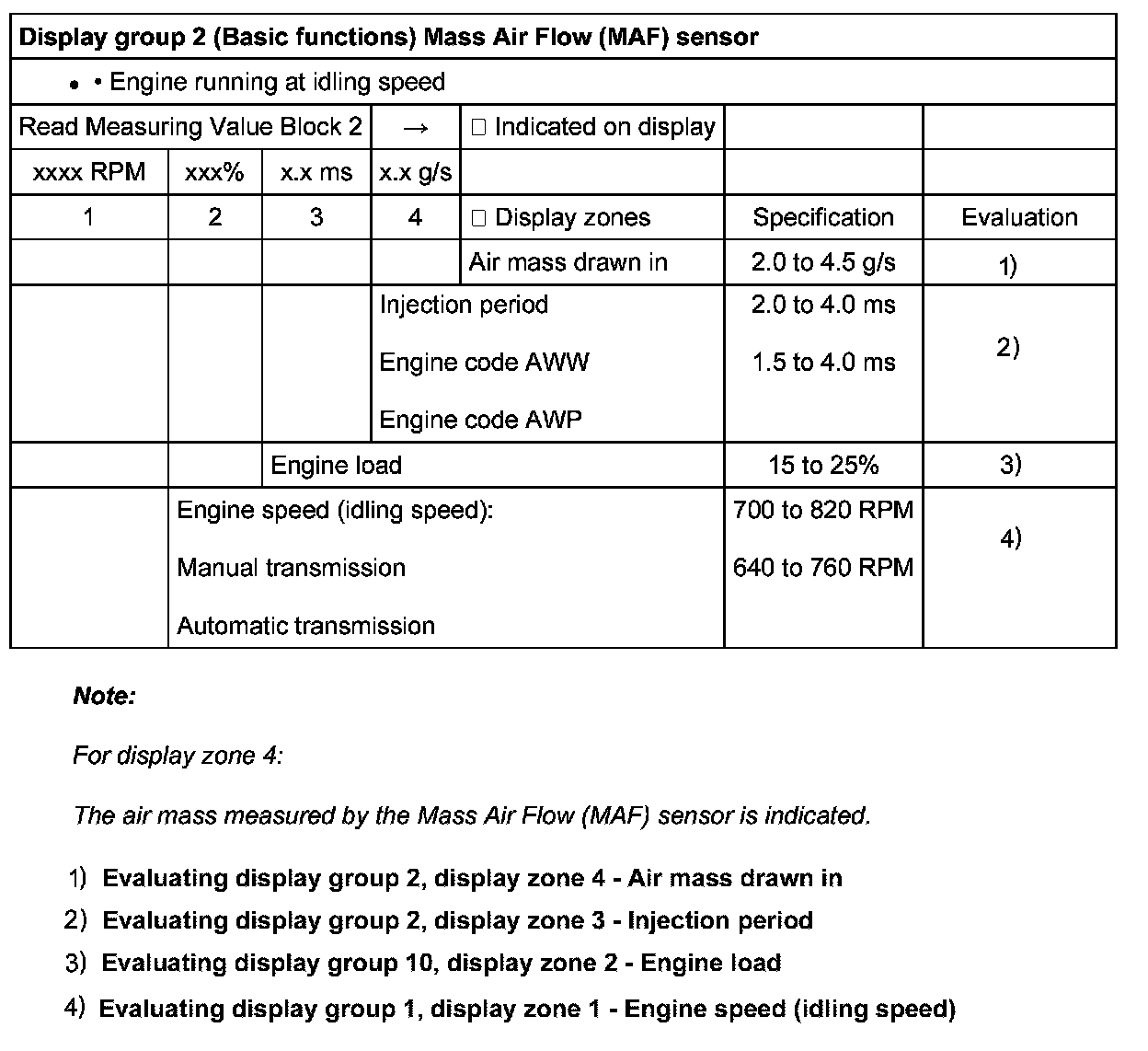 Evaluating display group 1, display zone 1 - Engine speed (idling speed)