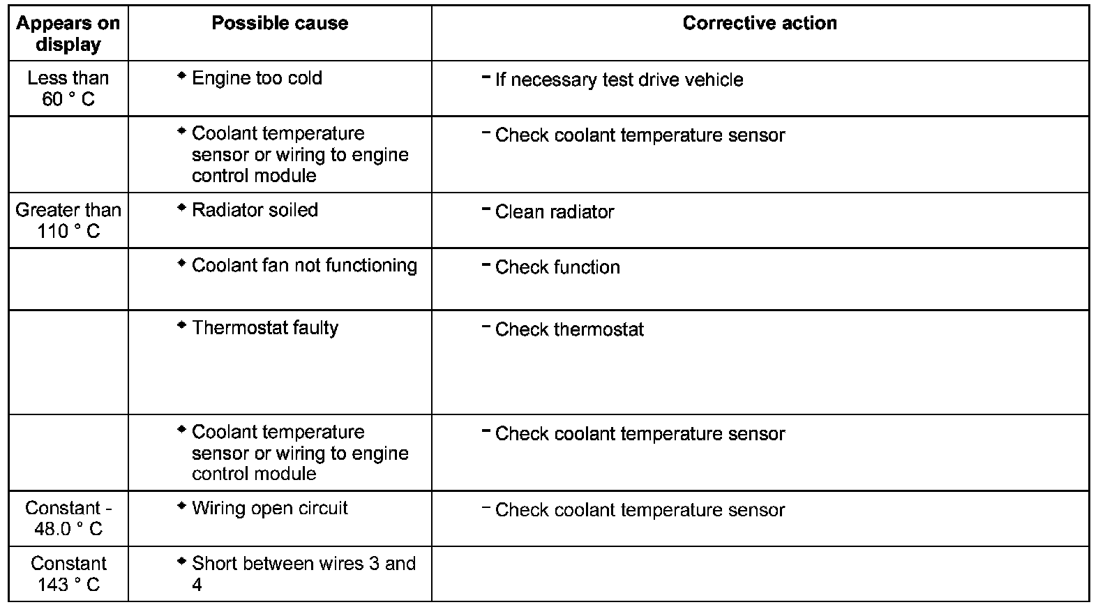 Evaluating display group 4, display zone 3 - Coolant temperature