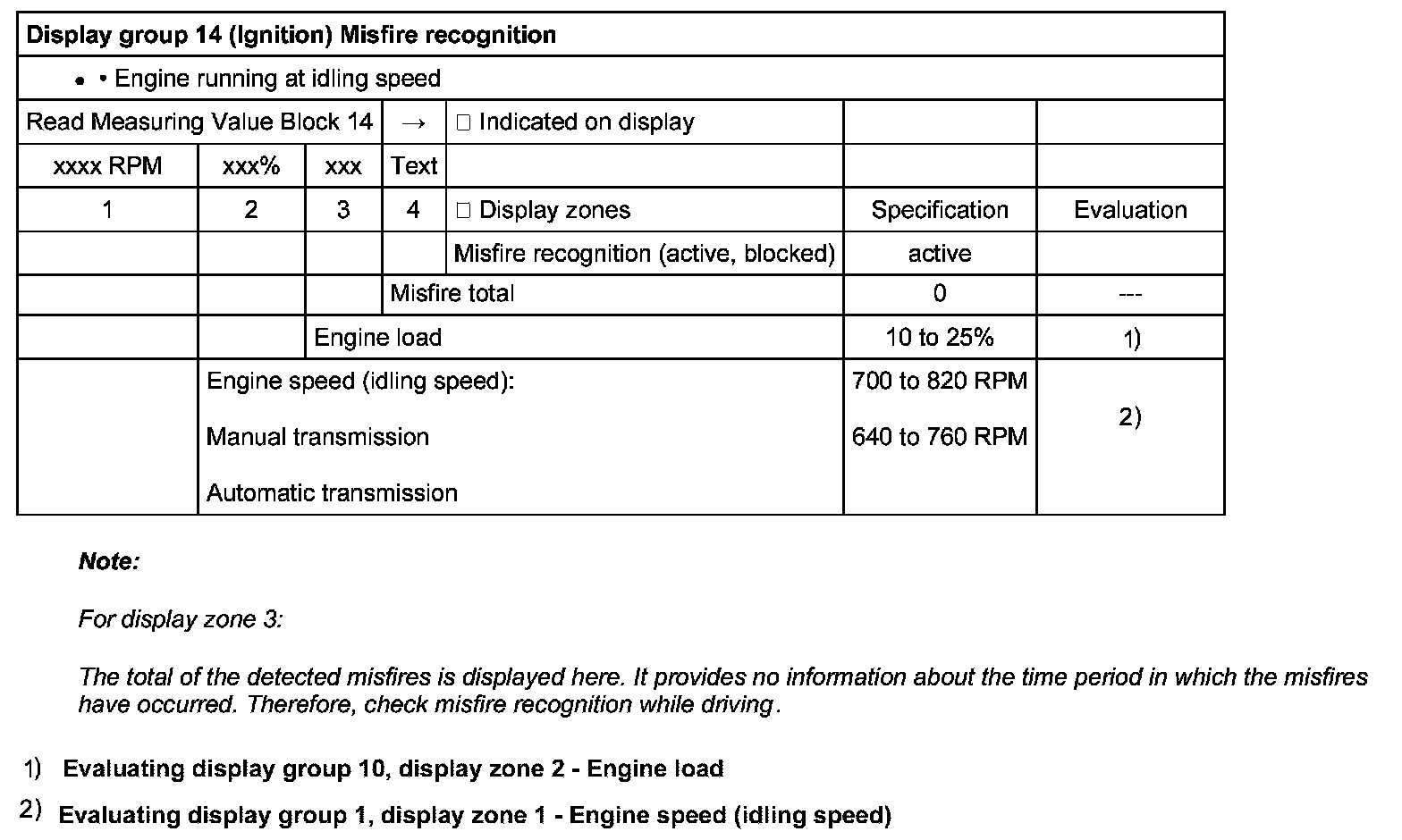 Evaluating display group 14, display zone 3 - Total number of misfires