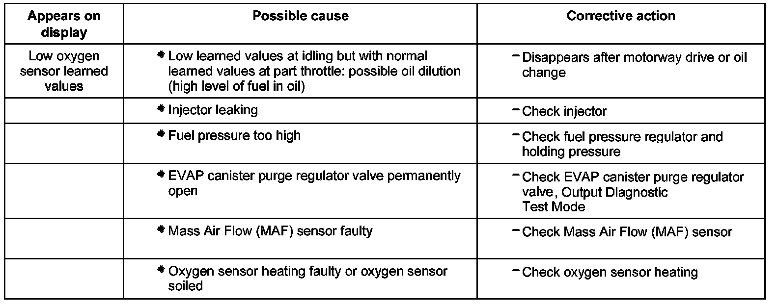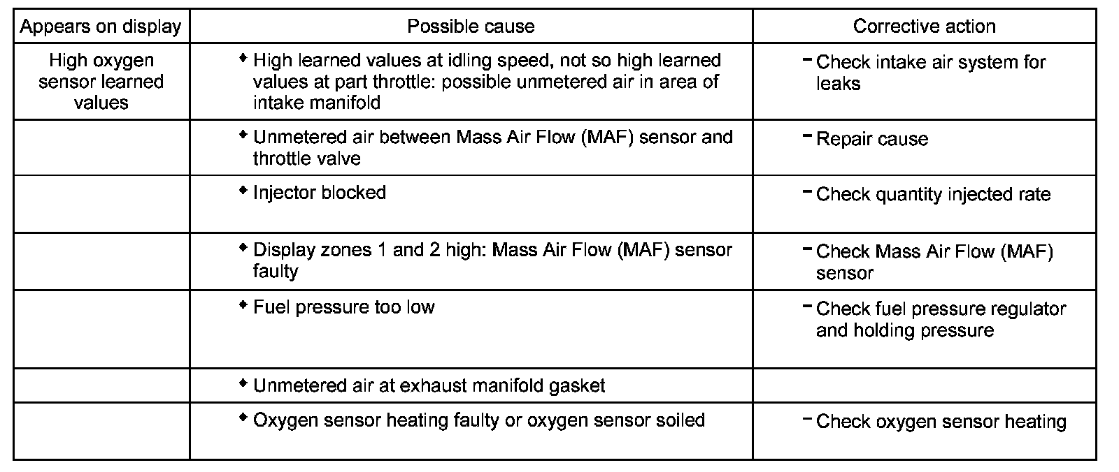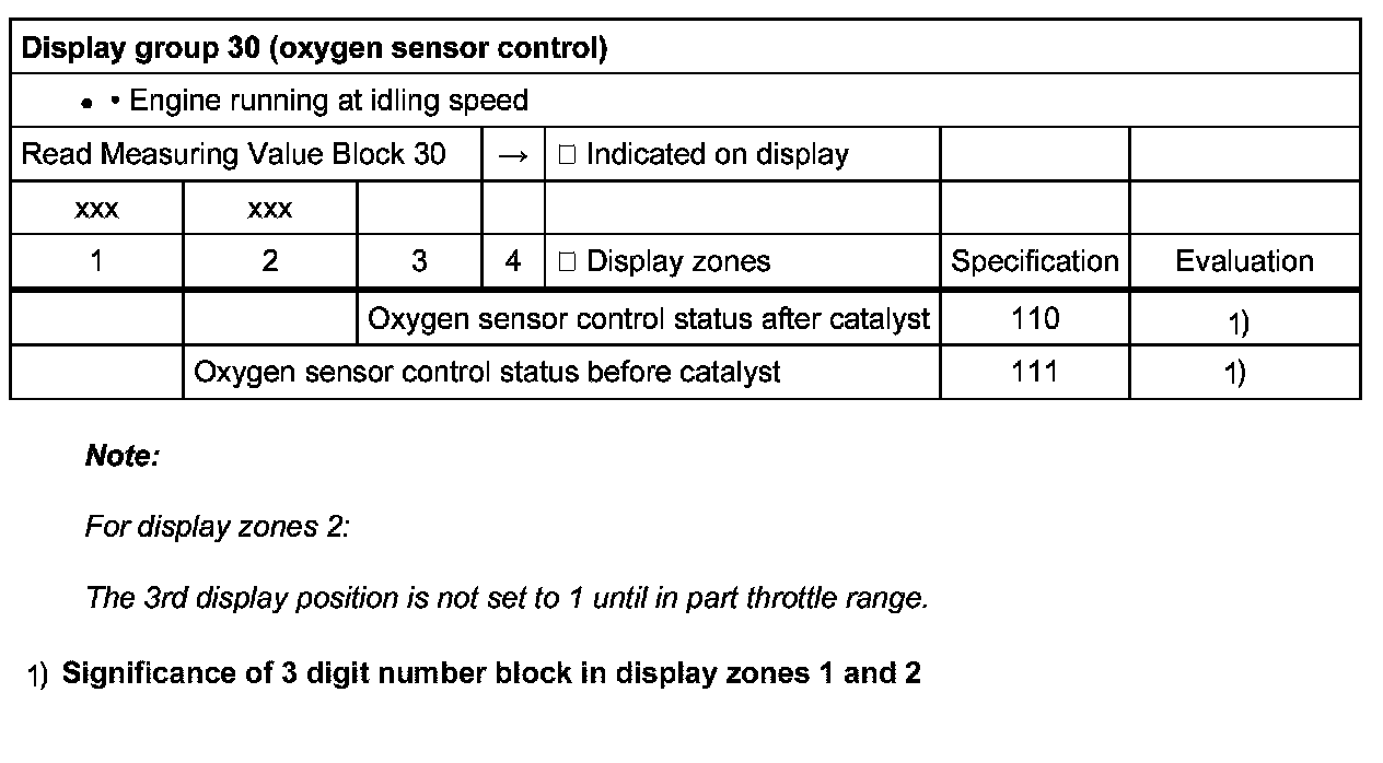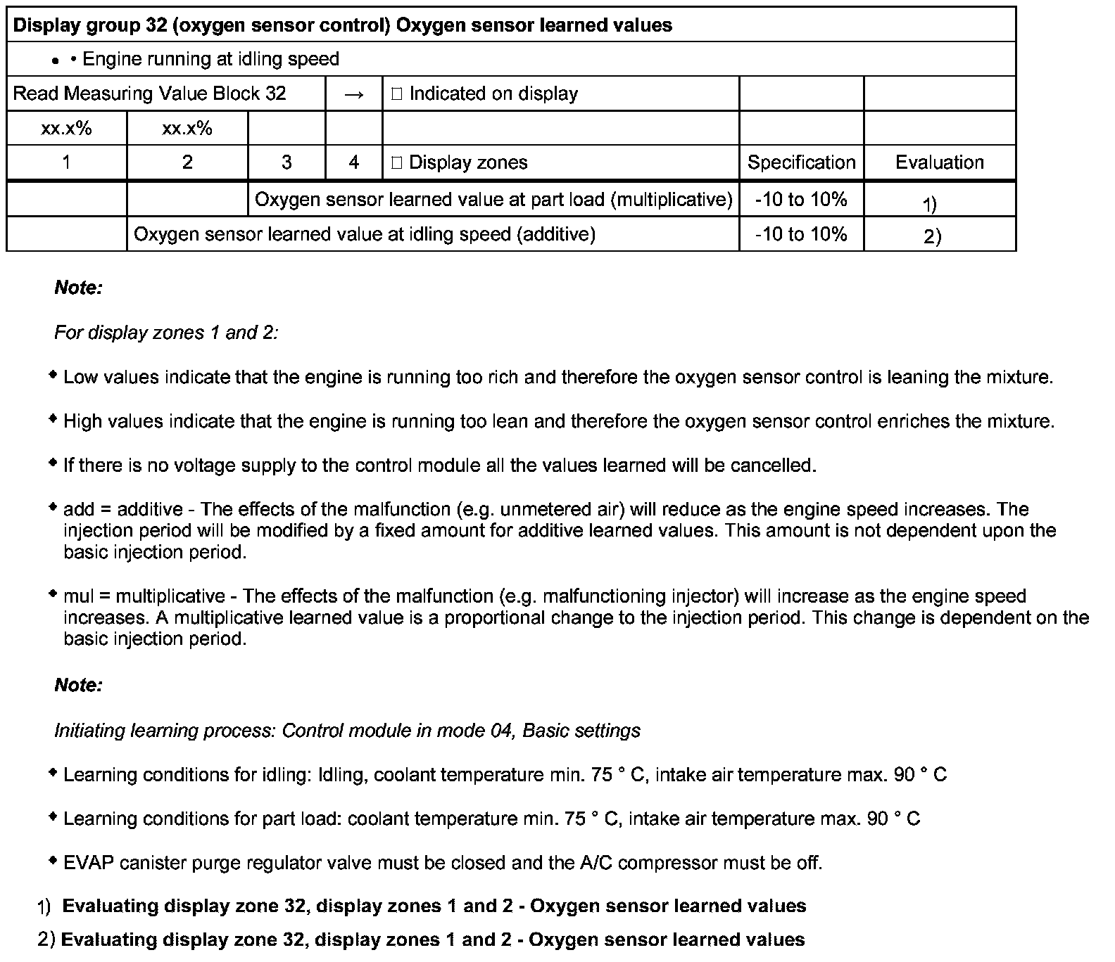 Evaluating display zone 32, display zones 1 and 2 - Oxygen sensor learned values
