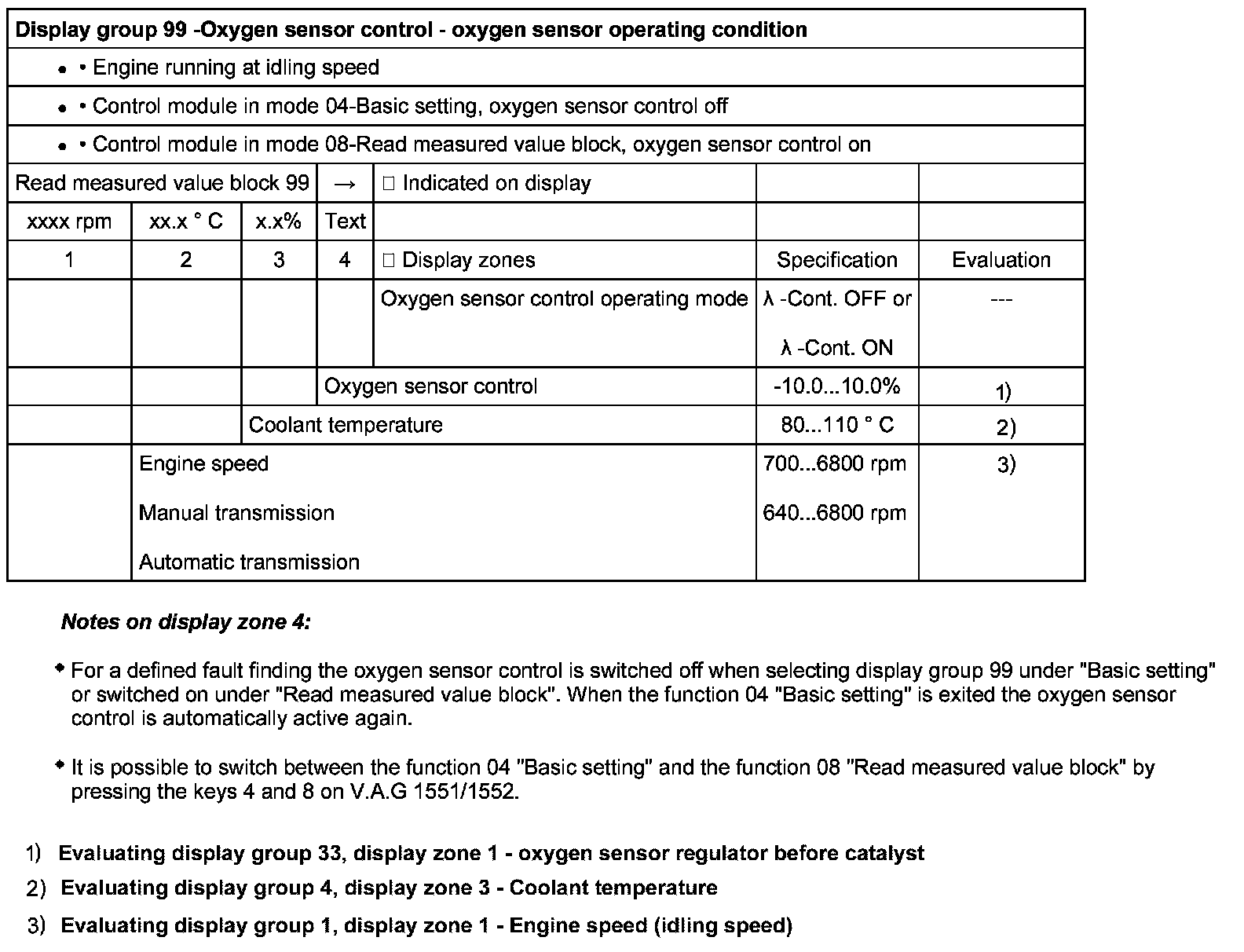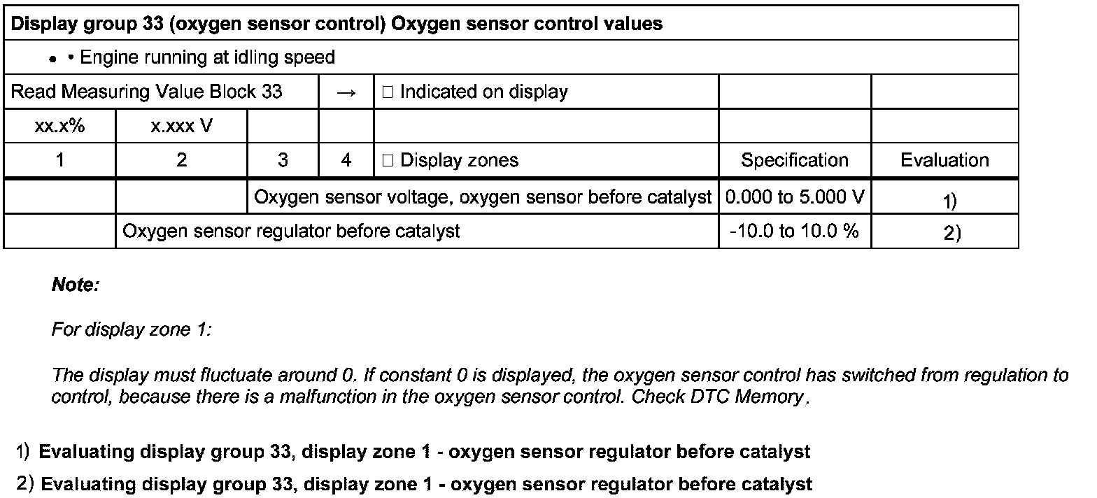 Evaluating display group 33, display zone 1 - oxygen sensor regulator before catalyst