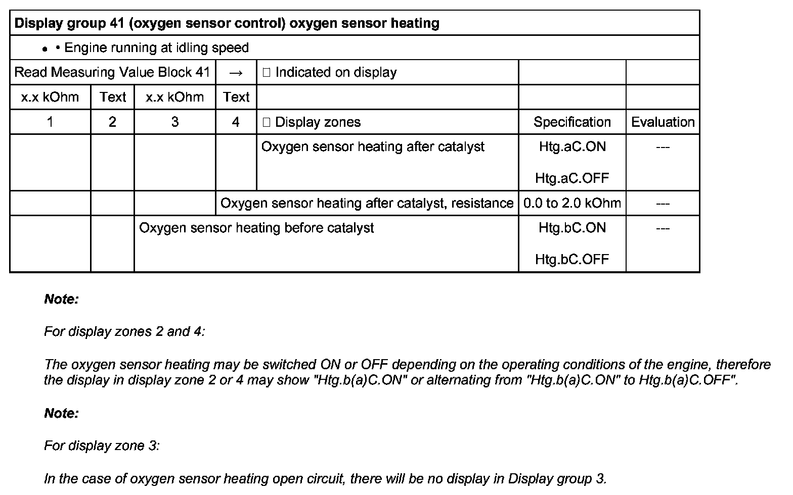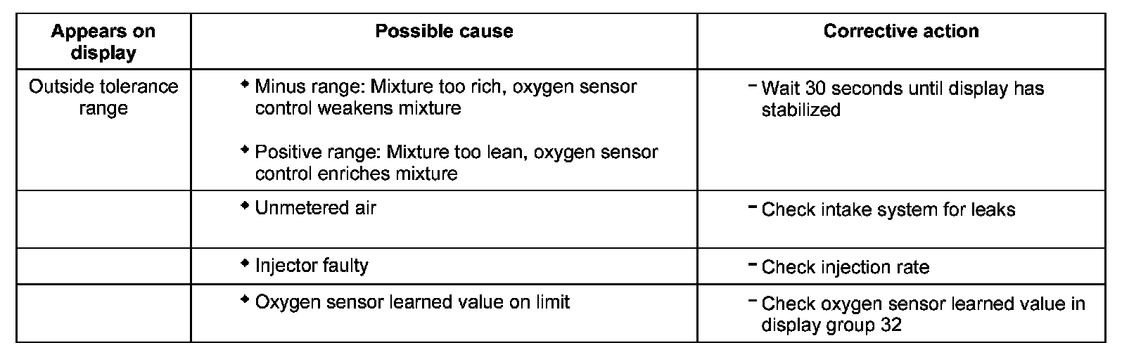 Measuring Value Blocks, Evaluating Display Groups 30 To 49, 99, 107 (oxygen Sensor Control)