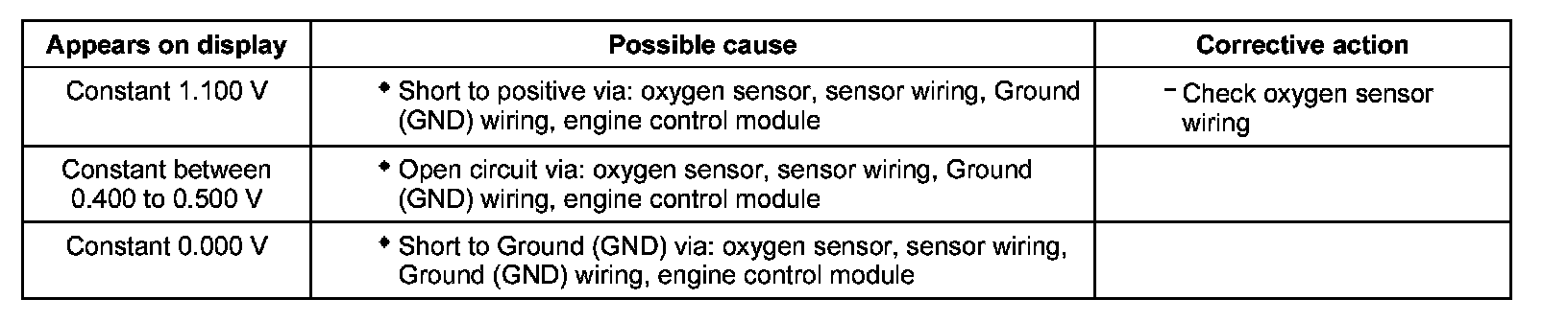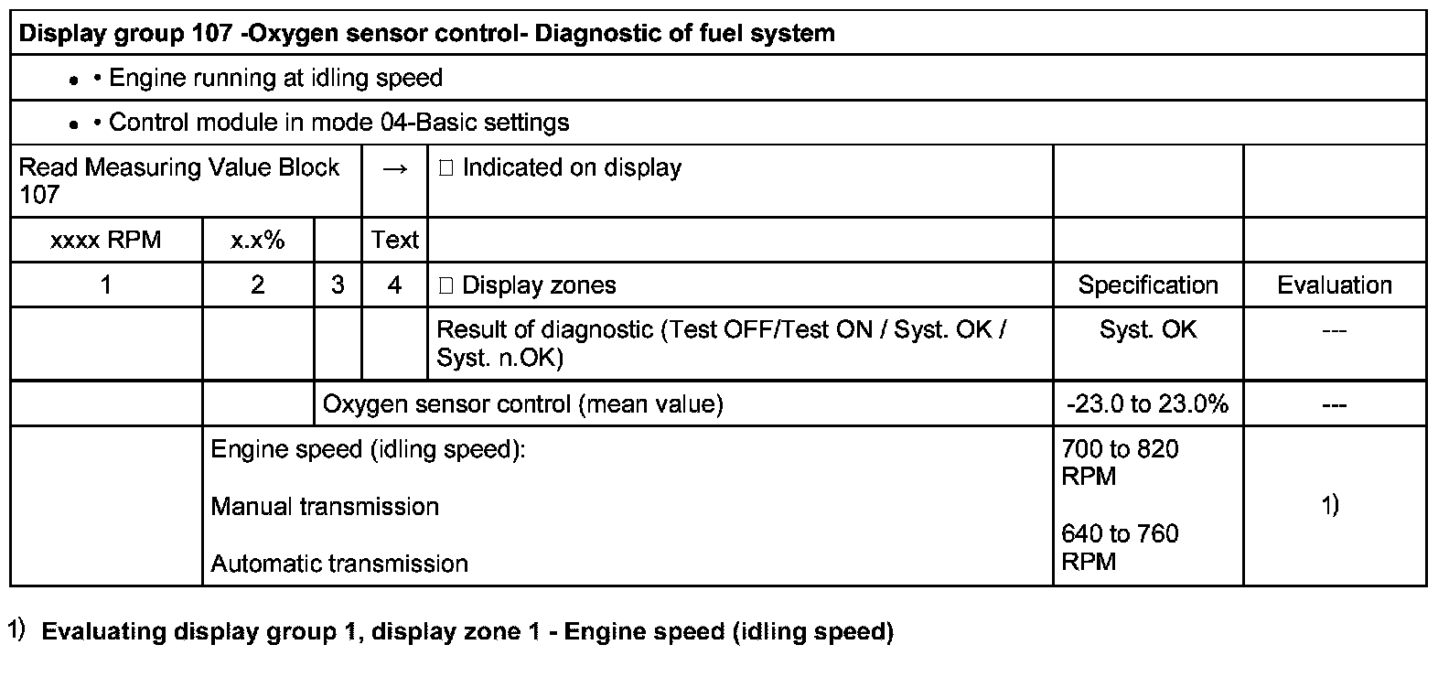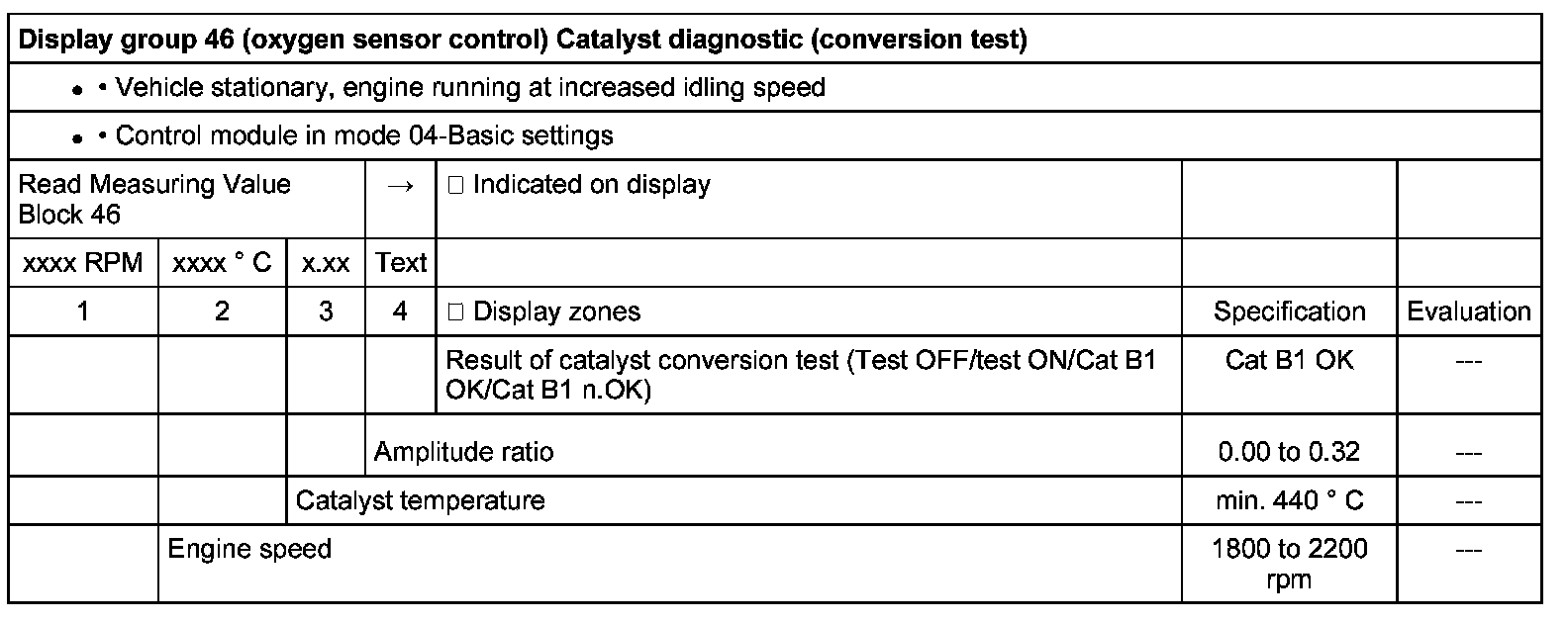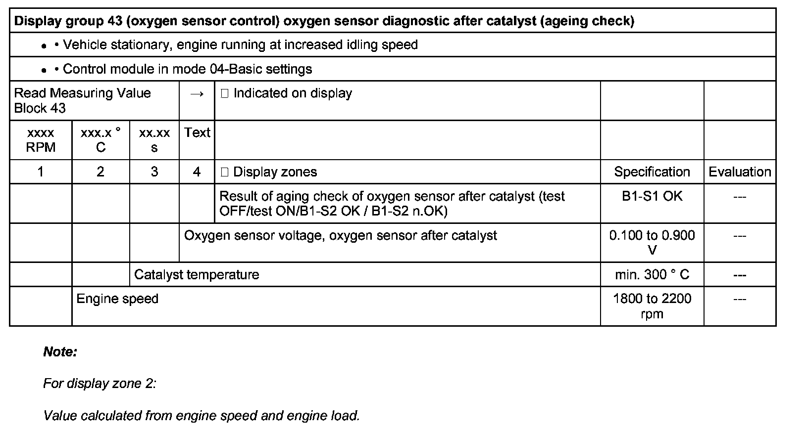 Evaluating display group 36, display zone 1 - Oxygen sensor voltage,oxygen sensor after catalyst