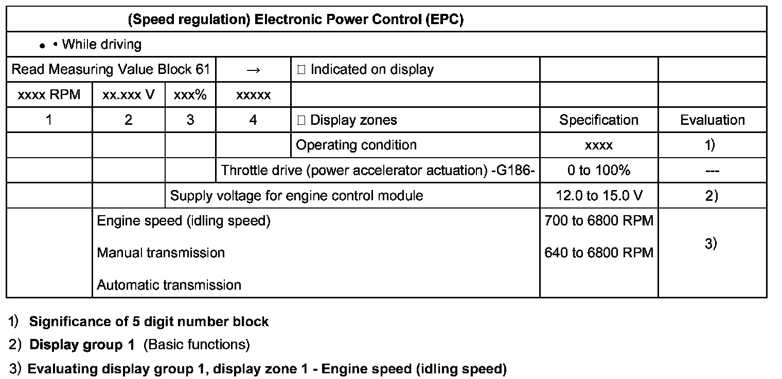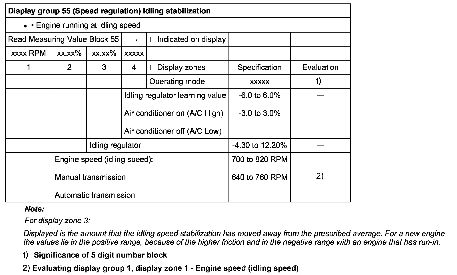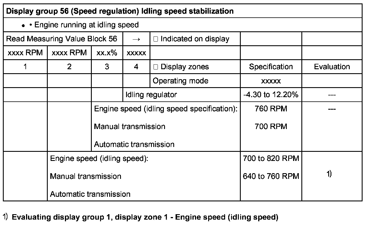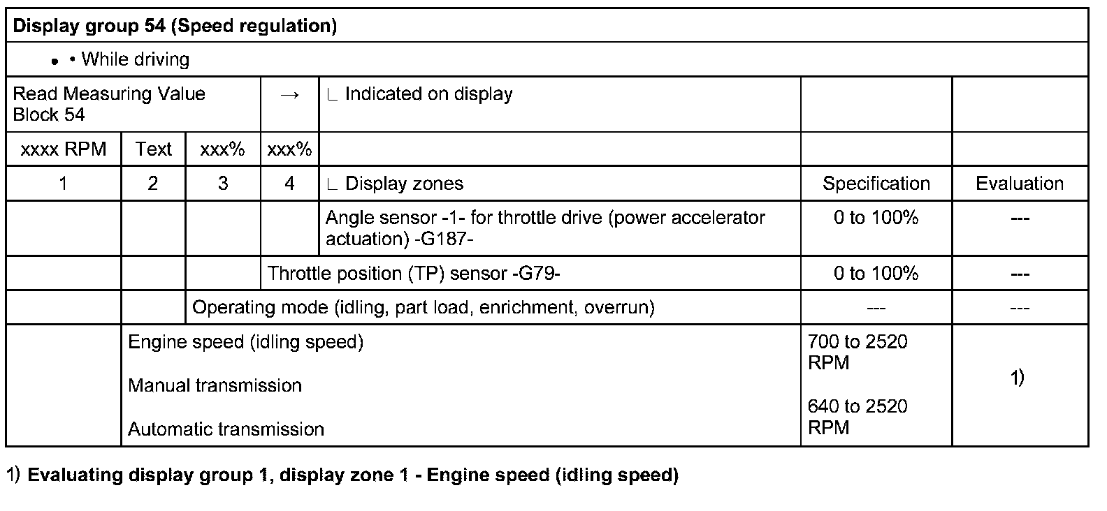 Measuring Value Blocks, Evaluating Display Groups 50 To 69 (Speed Regulation)