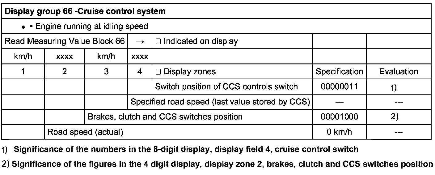 Significance of the figures in the 4 digit display, display zone 2, brakes, clutch and CCS switches position