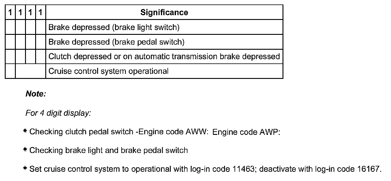 Significance of the numbers in the 8-digit display, display field 4, cruise control switch