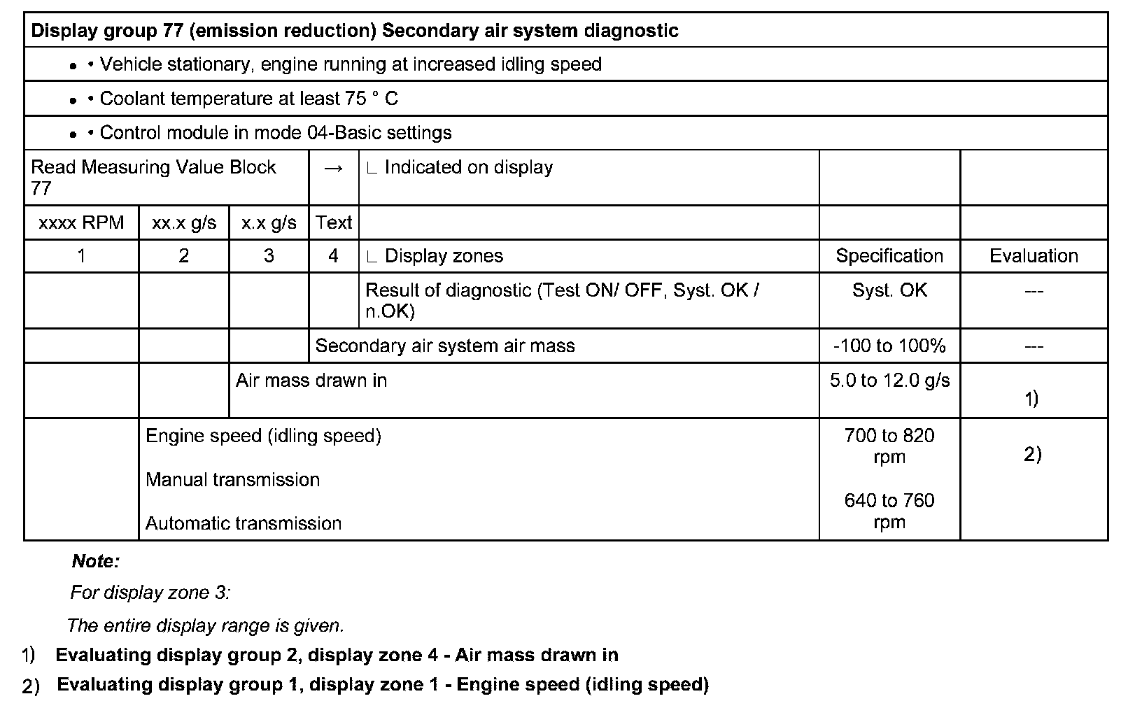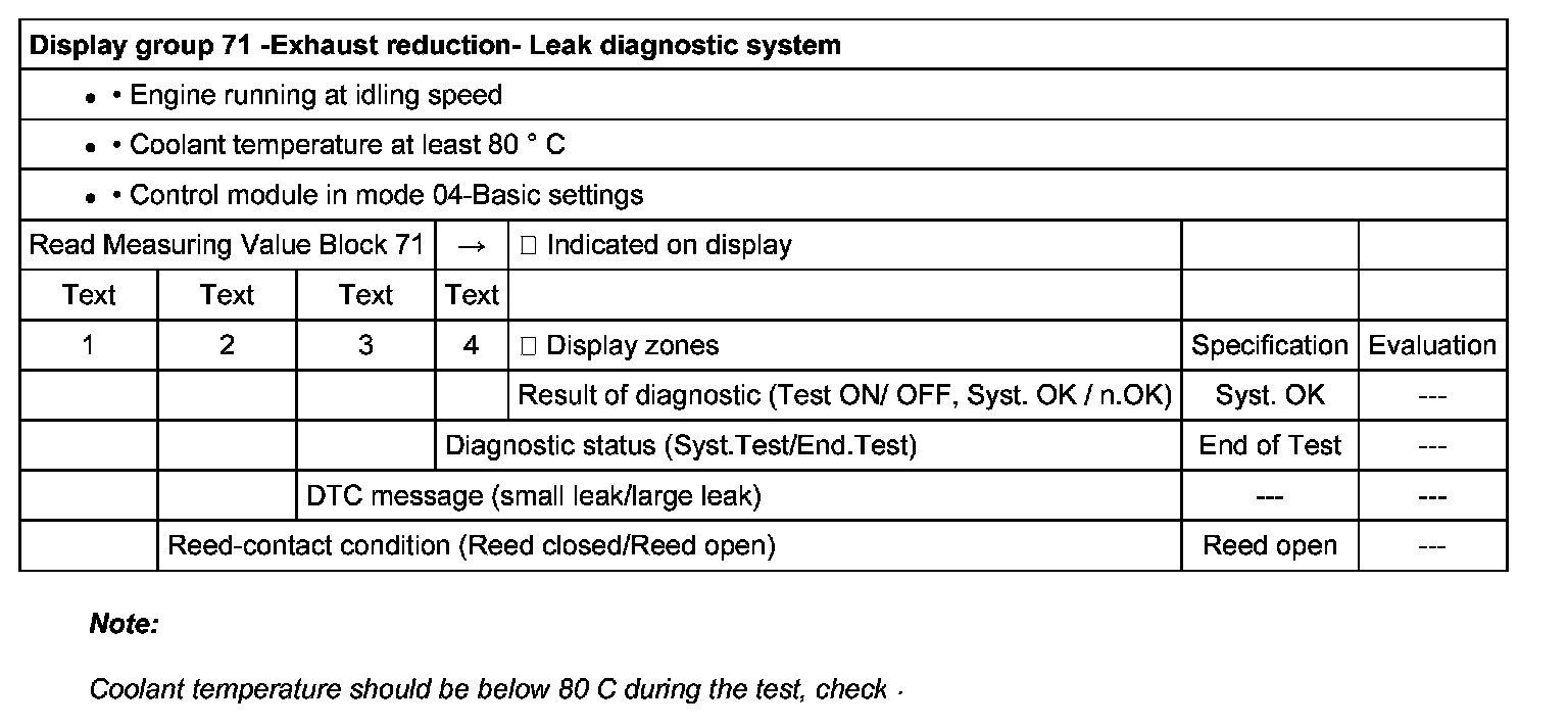 Measuring Value Blocks, Evaluating Display Groups 70 To 79 (Emission Reduction)