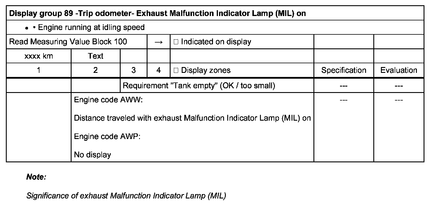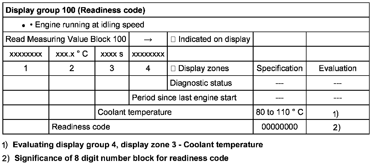 Measured Value Blocks, Evaluating Display Groups 86 To 89, 100 (Readiness Code)