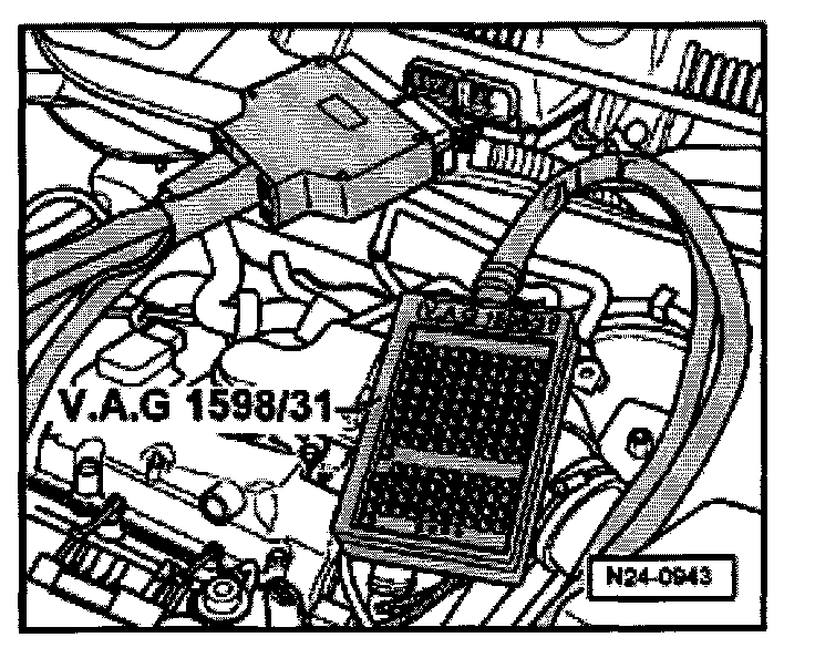 - Connect VAG1598/31 test box to control module wiring harness. Engine control module remains disconnected.