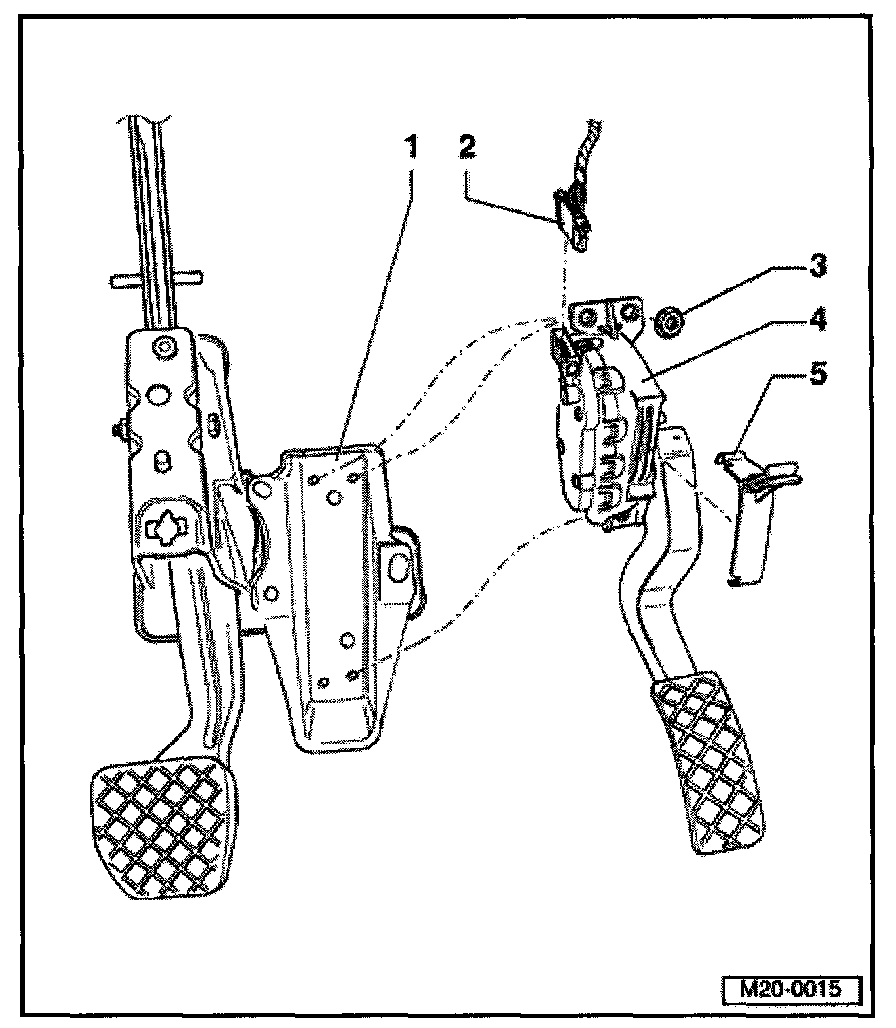 The position of the accelerator pedal is communicated to the Engine Control Module (ECM) via two sensors for accelerator pedal position (variable resistances; stored in one housing) that are connected with the accelerator pedal.