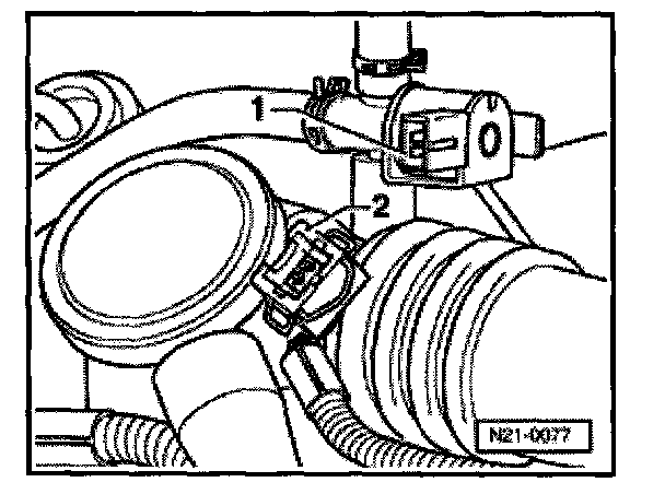 - Disconnect connector -2- at wastegate bypass regulator valve -N75-.