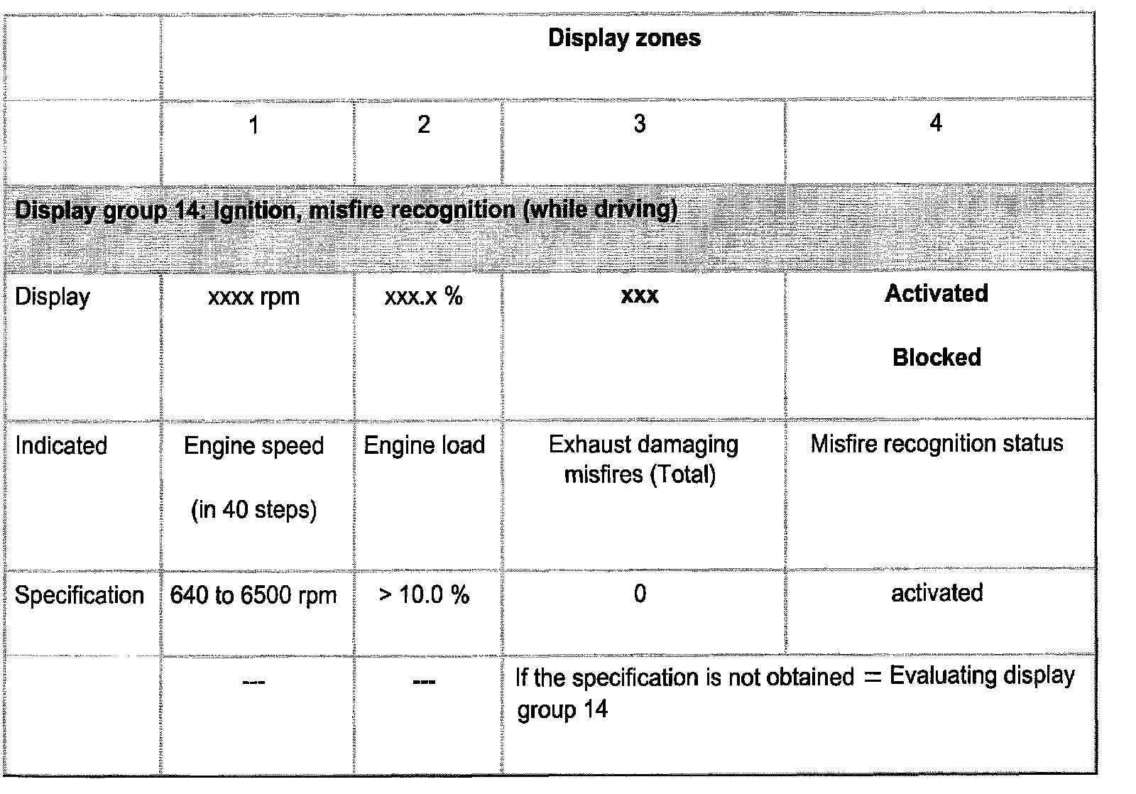 Evaluating display group 14, display zone 3 - total number of exhaust damaging misfires