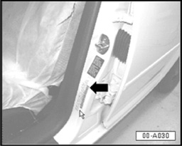 Vehicles with production date 09.00 (09/00) and later (see certification label on driver side B-pillar - arrow -) are provided with guidance fixtures and must be checked for installation during Pre-Delivery Inspection (PDI).