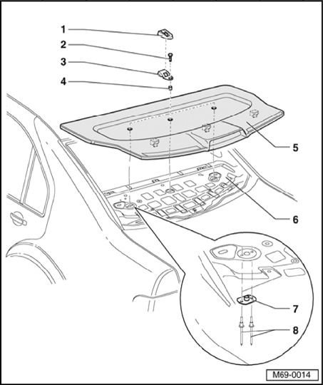 Illustration shows approximate locations for rear top tether anchorage points for Jetta Wagon.