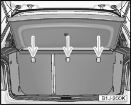Vehicles manufactured as of January 2001 are equipped with buttons (at arrows) to identify rear lower anchor points.