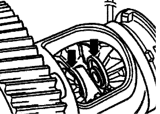 - If tapered roller bearings are to be re-used, mark the adjusting ring see Fig. 2