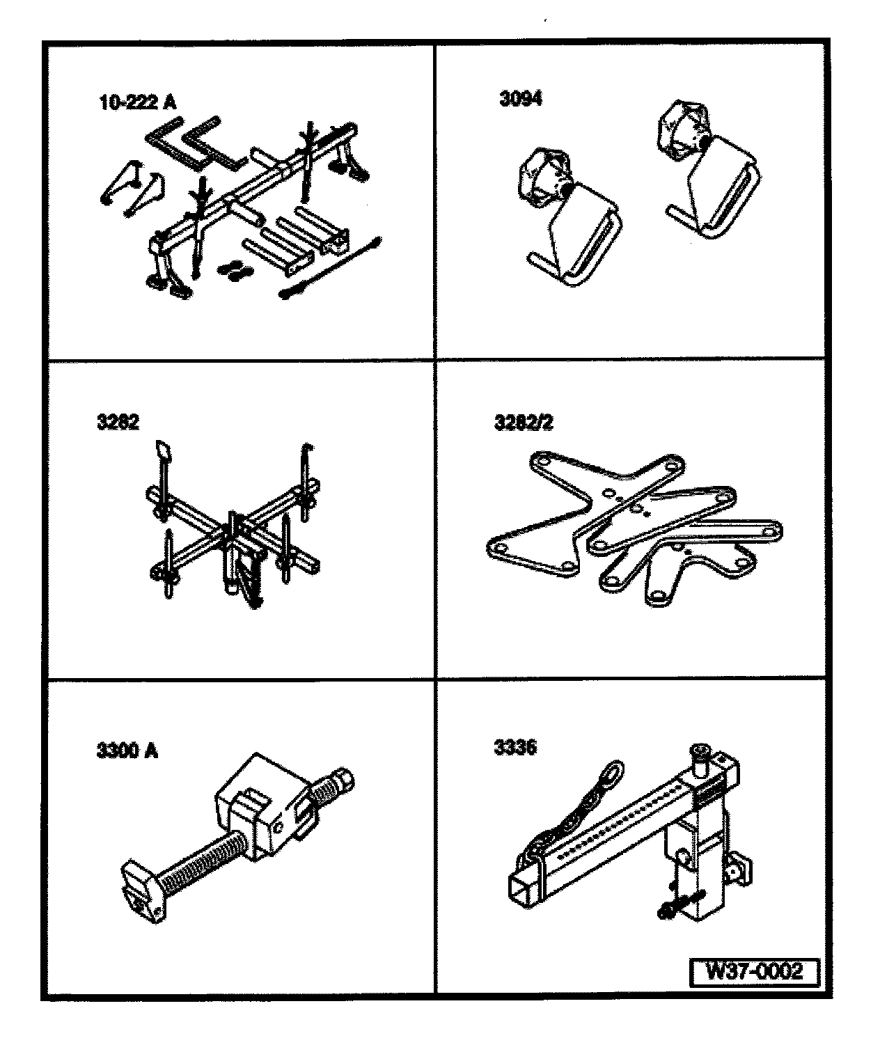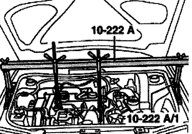 - Install support bar 10-222 A with legs 10-222 A/1 and support engine/transmission in this position.